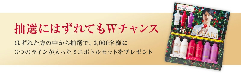 2015/03/13 Category : お小遣い 一新、TSUBAKI体感キャンペーン https://www.shiseido.co.jp/cms/auth/tbk/ifb/cp001/資生堂のTSUBAKIがキャンペーンやってます!!現品を10000人にプレゼントってすごいですね。外れてもダブルチャンスのプレゼントがまたすごい!!以前母が使ってたので流れで私もTSUBAKI使ってたのですが、いつの間にか使わなくなりました。香り好きだったんですけどね。また試してみたいです!